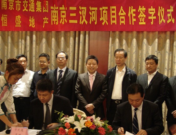 繼成功收購天津兩幅優(yōu)質(zhì)土地后,恒盛地產(chǎn)在成功上市后再度出擊。經(jīng)過與南京市交通建設(shè)投資控股(集團(tuán))有限公司的多次溝通洽談,雙方就合作開發(fā)位于南京市毗鄰長江的三汊河項目達(dá)成一致,相關(guān)合作協(xié)議的簽字儀式于10月15日晚在南京市白鷺洲公園會所春在閣隆重舉行。