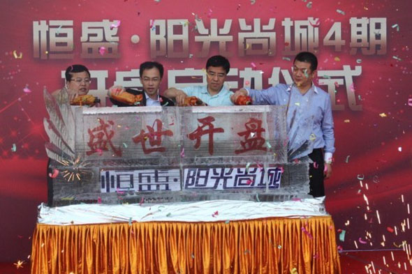 早上8點,銷售中心門前已經車水馬龍、人頭攢動,眾多客戶聚集在銷售中心門口,儼然一片熱烈的節日景象。在開盤啟動儀式活動上,于洪區區長連茂君、恒盛控股首席執行官程立雄、營銷管理中心總監鄭群國、恒盛陽光鑫地(遼寧)公司董事長李曉斌及恒盛地產相關領導親臨活動現場。集團各領導與區政府領導一同澆注“盛世開盤”冰雕,成功開啟慶典的啟動儀式,現場禮花與焰火紛燃,集團領導精彩致辭,并與1000多位準業主一道,共同見證這一輝煌的歷史時刻。